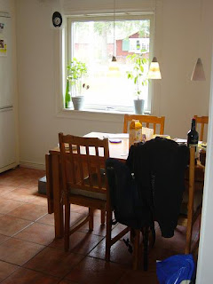 Nya gardiner, ny bordsduk, nya blommor, nya ash... ach... asch... sånadära runda grejer under de nya tallrikarna och nya blommor.